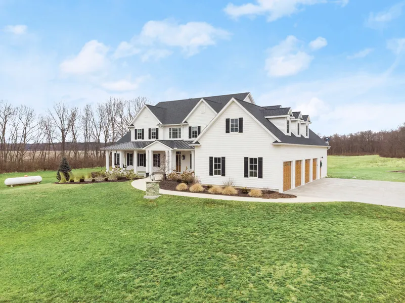 Custom built by Hamed Homes this home is 4 years old and is immaculately maintained. Just 30 minutes to the SW side of Fort Wayne and 10 minutes to Wabash, this home gives you all the space you need. The spacious main level features real wood floors, built-in cabinetry and stone countertops in the kitchen and all baths. Kitchen has a large island, high-end appliances, breakfast area and a large walk-in pantry. There is also a formal dining room with a feature wall. The den is on the main level had has plenty of room and built-in bookshelves. The main floor primary bedroom has gorgeous wood beams in the ceiling and large windows. The bath is stunning and features a soaking tub and custom walk-in tiled shower. You will also enjoy the large walk-in closet with all the storage you need. The primary bedroom is conveniently located next to the laundry room. The 2nd floor offers 3 bedrooms each...