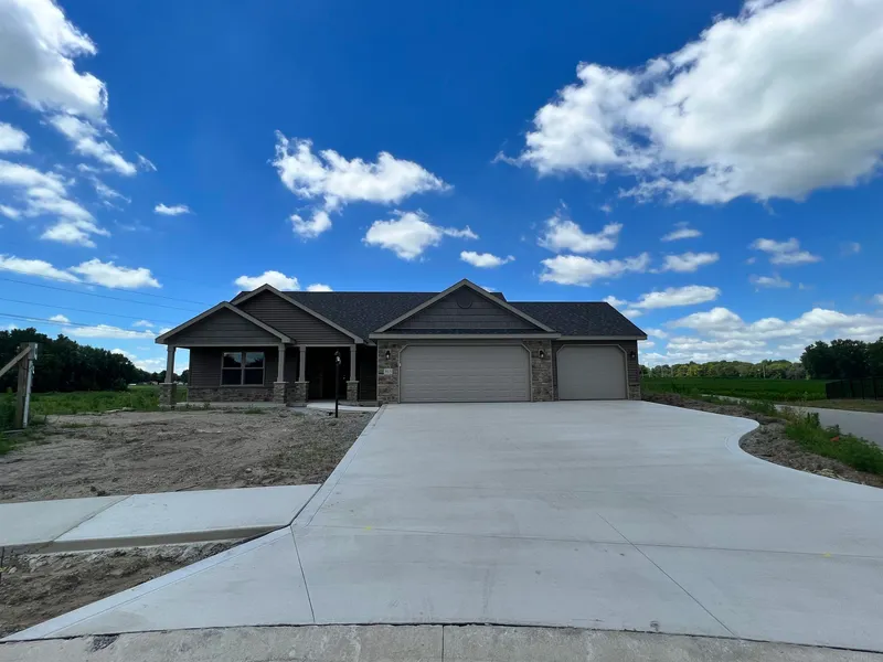 Under Construction Beautiful Customized 3 Bedroom, 2 Bath Ranch Home Custom Built Hickory Cabinets in Kitchen, Baths and Laundry Kitchen with Premium Stainless Steel Dishwasher and Microhood, 8 Deep Stainless Steel Kitchen Sink with Upgraded Spot Resist Stainless Pull Out Faucet Locking Vinyl Planks located in Dining, Kitchen, Laundry and Both Baths Lighted Ceiling Fans in Great Room & Primary Bedroom Primary Bath with 36 Tall Vanity and 5' Walk-In Shower with Chrome Rain Shower Head Upgraded Bath Fixtures, High-Rise Elongated Toilet, Cultured Marble Vanity Top with Wave Bowl in both Baths Great Room with Chamfer Ceiling, Wide Painted Trim and Rounded Drywall Corners Throughout 95% Efficient Gas Furnace and Central Air Conditioning with Fresh Air Ventilation and Programmable Thermostat 3 Car, Semi-Finished Standard Size Garage Wireless Keypad for Main Garage 3rd Bay Garage with Door Opener Upgraded Front Door with Sidelite Exterior with Vinyl Siding & Shakes, Upgraded Exterior Light Package, Partial Front Stone, Address Stone and Architectural Shingles