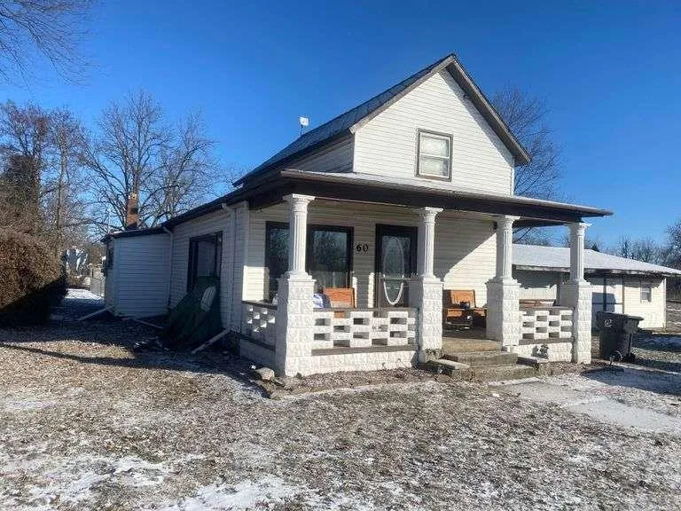 1.5 story home featuring 2 bedrooms and 1 newly renovated bathroom. The main floor includes a cozy bedroom, while the expansive bedroom upstairs boasts a generous walk-in closet, providing ample storage space. The kitchen is seamlessly open to the dining room, creating an inviting atmosphere for family gatherings and entertaining. An enclosed porch adds additional living space. The main floor also includes a dedicated office and a laundry room for added convenience. Outside, you'll find a spacious 28x35 detached garage, ideal for vehicles and hobbies. Recent upgrades include a new air conditioning system, well, and septic, ensuring peace of mind for years to come.