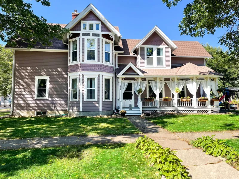 Welcome to the Oliver Carlson House. Built in 1894, this historic home boasts up to 5 bedrooms, 2 baths, an eat-in entertaining kitchen, pro stainless-steel refrigerator, walk-in pantry, formal dining room, sitting room with fireplace, tv/living room, clawfoot bath, original woodwork throughout with sightlines you don't find in a home of this age. Your secondary stairs off the kitchen lead to what would be a convenient mother-in-law suite, guest room or bonus room. Original light fixtures adorn the ceilings & glass knobs can be found on every door. Laundry is conveniently placed on the main floor. This home sits on a double lot with mature trees, wildflower gardens & an established raised vegetable garden. Enjoy the outdoors, rain or shine, on the large front porch with outdoor fan, patio furniture & curtains that flow in the summer breeze. Home is only 3 blocks from Lake Pepin. This hom...