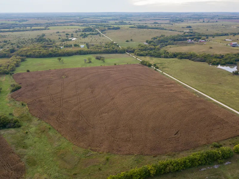 Located just a few miles north of Harveyville, Kansas, and mile west of blacktop Harveyville Road, this property provides a multitude of opportunities! At just under 40 acres, there are roughly 32 tillable, with this primarily consisting of Class III Martin Silty Clay Loam. This tract is farmed by a local tenant who would like to continue farming the ground and currently has corn planted. Terracing was completed on the farm in 2023. The balance of the property consists of a native waterway and meadow with a beautiful walnut-lined hedge row. From the road, the property gently rolls to the south and west, providing an awesome view for sunsets over the property. With the terrain and plethora of build sites, a walkout basement is a sure possibility, and multiple sites exist for the construction of a pond. The south end shows great wildlife sign in the secluded tillable corner separated from the balance of the tillable as well as throughout the timbered hedge row. Electricity is at the Northeast corner of the property, and although rural water there, a feasibility study was completed, and the line is currently maxed out, so a well would be the primary water source. With short access to blacktop, rolling terrain providing great views from multiple build sites, income from tillable production, all with the ability to hunt out your back door, this is not one to miss! Contact Joey Purpura at (785) 831-3045 for disclosures, maps, or to schedule a showing.
