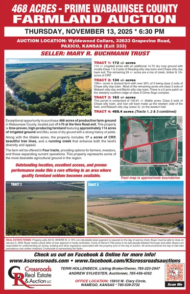 The farm will be offered in Four tracts, providing options for farmers, investors,