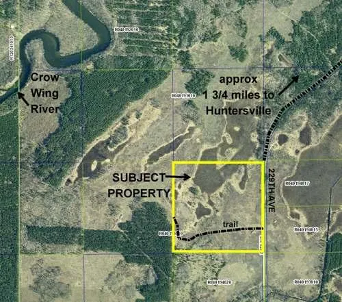 This land less than two miles south of Huntersville has a lot to offer an avid hunter. It is within the Huntersville State Forest and adjoins public land for ample hunting opportunities. Wetland in the northern part meets upland covered in Aspen and Spruce in the southern part. Unpaved 229th Ave runs along the east boundary and a trail leading through the south part provides great access. This property is just east of the Crow Wing River and public accesses are just a few miles away.