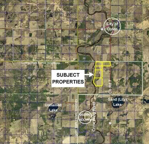 Wooded 20 acres just a mile south of Oylen (north of Staples) right on paved Co Rd 7. Rolling land covered in 13+ year old Red Pine. Within Lyons State Forest. Across the road from hundreds of acres of public land. Sand (Lily) Lake is only about a mile south. Public access to Crow Wing River nearby. Subject to ingress-egress easement benefitting adjoining tracts. Additional land also available (MLS# 202432, 202434, 202437, 202438).