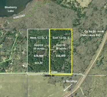 Approximately 20 acres of wooded land located on a paved road less than four miles northeast of Menahga. Nearly all upland with only a spot of wetland near the center of the tract. Excellent tract for hunting or building. The mature Red Pines covering the tract hold significant timber value making this an excellent timber investment as well. Public access to Blueberry Lake is only about a mile away. Shell River, Mirror Lake, Lower Twin Lake, Stocking Lake, and Stocking Creek are also nearby. County tax records indicate entire Government Lot 2 (from which this is split) consists of 45 acres.