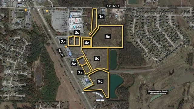 Auctions: 3:00 PM 4/15/2022 1.41+/- acres of vacant commercial land. Located just South of Walmart with easy access to heavily traveled Hwy 51. This parcel is part of a larger assemblage. The business park has access to water, electric, and gas. The property utilizes city water and sewer. Seller improvements to the business complex include: ? Constructed three box culverts. Two in Coweta Crossing North 20. These were (2) 3'X8' box culverts each. (1) under E. 116th Street which crossed Coweta Creek, allowing traffic to move to the new residential development to the east. ? Installation of double 6'x10' box culvert to cross Coweta Creek ? Installation of traffic signal at 116th and highway 51 ? 1092+/- lf of asphalt paving from east property line to end, at the golf course, where new residential construction begins. ? Mitigation of wetland area on golf course and along Coweta Creek ? Constructed the two detention ponds. ? Water lines to serve Coweta Crossing North 20 and Coweta Crossing South 45. ? Sanitary sewer to serve Coweta Crossing South 45. Grading for the streets, detention, and lots in both Coweta Crossing North 20 and South 45. ? Grading for the streets, detention, and lots in both Coweta Crossing North 20 and South 45. ? Storm sewer to collect runoff on 116th, S. 271st E. Ave. and discharge to the creek. This property is part of a Ballroom Auction on April 15. View all properties available here View Property Flyer Note: A Buyer's Premium (Buyer's Fee in WI) will apply for this property. Please see Terms of Sale for details. Broker Licenses: OK Becky Zarecki, RE Lic 138243; Chinowth & Cohen Realtors, Firm Lic 148085, 918-520-2808