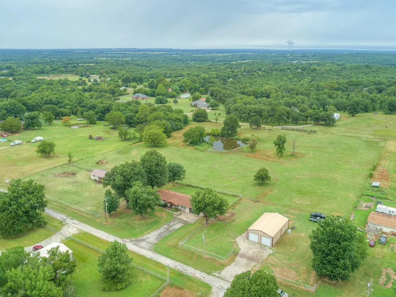 RARE 7.50 +/- AC IN BROKEN ARROW!!!! This Beautiful Home, Red-Iron Shop and Equestrian Barn is nestled off a dead end road in a great area of BA! The home has an updated kitchen, new appliances, paint, light fixtures, porcelain tile, windows, h/w tank new in 16 and new HVAC in 17. Barn roof just replaced, has 3 stalls, a birthing stall and a tack room. Property is fully fenced and ready for your livestock with plenty of space for entertaining with the oversized deck and pergola overlooking the pond. Call today!