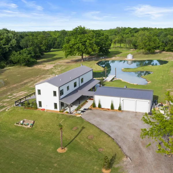 Where Style and Recreation meet! This functional secluded property on 60 +/- acres boasts a large stocked pond, 1500 sq ft garage/workshop, coverage for wildlife and all the fun you can handle. Step inside the Stunning steel framed home w/ spray foam insulation, metal roof, Windsor windows/doors, massive vaulted ceilings, and all beds w/ private baths. With custom features throughout and covered patios on all sides this home aims to please. 15 min to Rose District BA, 25 min to downtown Tulsa.