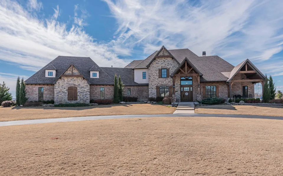 This amazing property sits on 19.93 acres with a pond and gorgeous views of the Oklahoma sunset. Stunning 2017 custom build minutes from the Creek turnpike. Home includes master suite with fireplace and 2 additional guest rooms with private baths downstairs, large bonus room with private balcony upstairs, and additional space pre wired for theatre room. Large indoor safe room with electric, whole house generator ready, and a sprinkler system in the yard that extends around the perimeter of the home.