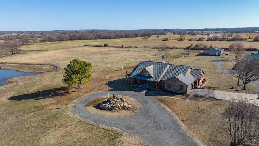 3 Bedroom, 2 Bath log home with metal roof sitting on 20 acres. Approx. 4 miles from Sequoyah Bay "Ft. Gibson Lake." Vaulted wood ceilings in living room. Large open kitchen. Spacious MBR w/walk-in closet, opens out to covered patio. Storm shelter in garage. 4 acre fully stocked pond w/dock. Crossed fence pasture. Barn w/ overhead and walk- in door, 4 stalls w/ tack area and round pen behind. Shop w/ remodeled living area and full bath, overhead and walk- in door.