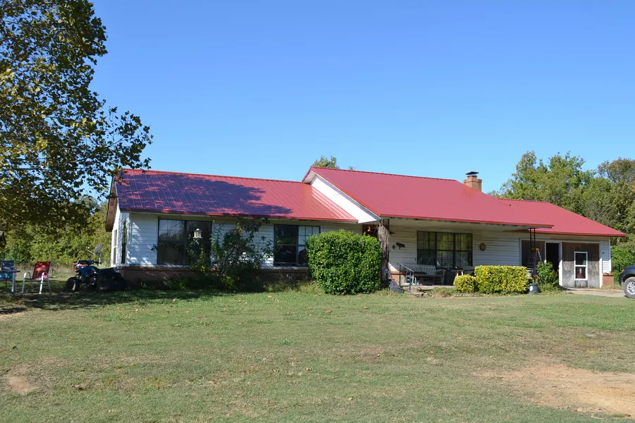 Secluded home on 2+ acres with easy access to Hwy 69 and Muskogee Turnpike. No restrictions so bring the animals. 3 bay garage or equipment shed, storm cellar with access from inside home, wood burning fireplace, island kitchen, 2 large frame buildings used for hobby shop and guest quarters, RV electric and water connections, small building for RV use, has shower & W/D.