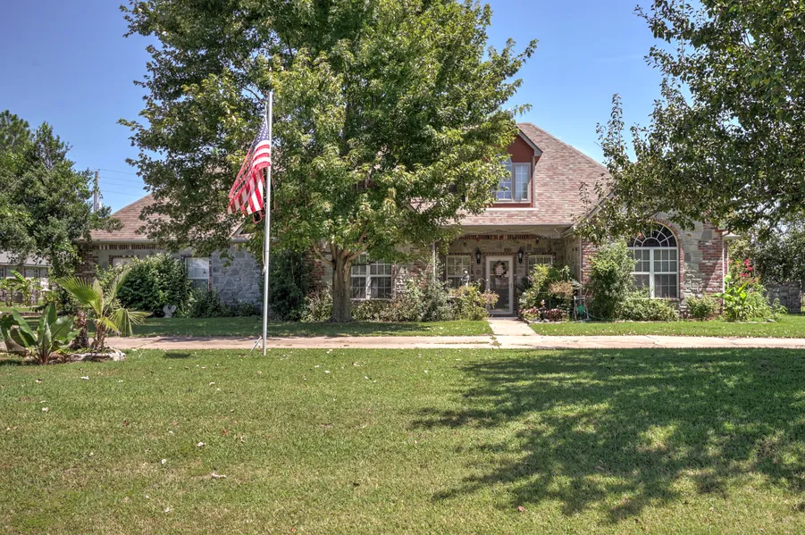 ONE OWNER CUSTOM ON 1 ACRE-CIRCLE DRIVE-HOME IS ALL STONE & BRICK, NO SIDING. FAMILY RM 20 FT CEILING APPROX. 33 X 20+ FIREPLACE. KITCHEN-CENTER ISLE-EXCESSIVE CABINETS-4 DOOR PANTRY W/DRAWERS & BUILT IN DESK. VERY LRG MSTR FR. DOORS TO PATIO. LUXURY BATH WHIRLPOOL, SEP. SHOWER. ALL RMS MAIN FLOOR, SPLIT PLAN-UPSTAIRS GAME ROOM VERY SPACIOUS-AMAZING STORAGE THRU OUT-ALL ROOMS 2" BLINDS & FAN LIGHTS-SKYLIGHTS-BREAKFAST RM + FORMAL DINING. FAB. IN-GROUND 9' DIVING-POOL. DECK, STORAGE BLDG.GAZEBO HAS FP