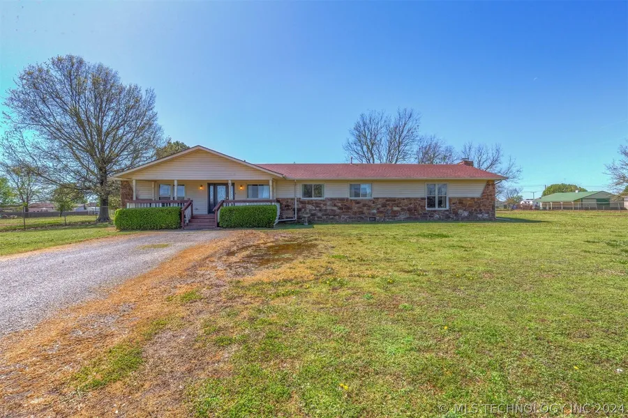 Discover the potential of this spacious 4-bedroom, 2-bathroom home on a spacious 1-acre lot, complete with a 20x20 metal shop for your projects. With a flexible floor plan offering two living room options (one could be ideal for home office or formal dining, and one includes a cozy wood-burning fireplace). The possibilities for customization are endless. While the property is in need of updating, its excellent location near the Muskogee Turnpike presents a fantastic opportunity for those seeking a project with great potential. Situated in the Coweta School District and outside city limits, this property offers the perfect blend of rural charm and convenience. With a low maintenance exterior featuring vinyl siding and stone, as well as a partially fenced yard, this home is ready for your personal touch. Don't miss out on this chance to create your dream home in a sought-after area!