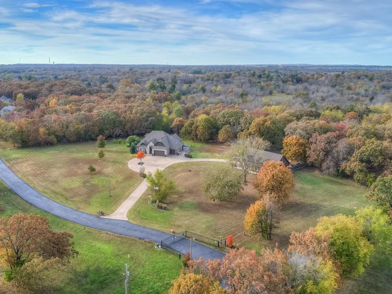 This gorgeous Country French Executive Home has 4,118SF and sits on 2.59 acres with a large, nice circle drive and includes a fully equipped 30x50 shop! Heated stained concrete floors in home and shop and an open/split floor plan for the 5 bedroom, 3.5 bath, 3 car garage home. The home is energy efficient and has radiant floor heating and new high efficiency hot water tank, 3 HVAC zones, automatic Natural Gas powered backup generator, new tankless hot water heater added in Feb 2018, central vac system, a gourmet kitchen, master with huge his and her closets, upstairs wet bar in media room, game/workout room, and many hidden rooms and tons of storage. The 30x50 shop is every mans dream! Property includes plenty of parking, a dog kennel with 3 fenced areas for animals, and a fire pit area between the shop and home. Excellent home for entertaining! Property is located close to the Creek Turnpike and is less than 5 miles to shopping and golf courses. Horses and other livestock are permitted.