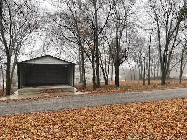This partially cleared lot has a 26' x 22' almost new, metal garage with 10' walls, ready for a garage door with a concrete floor with a 22' wide concrete driveway.