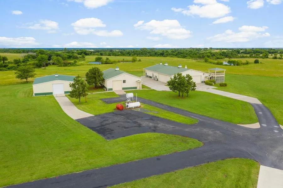 As you enter the private gated community, you will travel down the 1,600 concrete drive to the 6,000 sf structure which includes 3,800 sf of high end custom living space and a 2,200 sf shop/hangar. The home is super high quality and offers a 6x8 safe room, an observation tower, Simplisafe alarm system and so much more. Approximately 2,400 sf is the Great Room which was designed as both a hub and a homestead with the intention to fulfill a number of different purposes but mainly a compound for friends and family to unite.