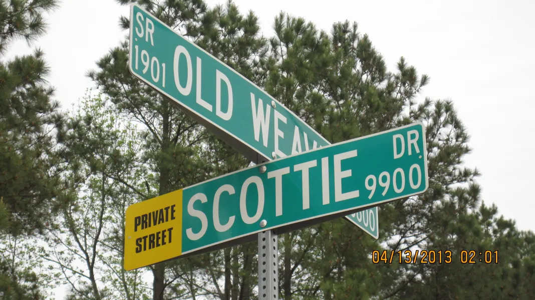 Research Parcel InformationNorth on Hwy 50 (Creedmoor Road), Turn left on Old Weaver, left on Scottie Drive, sign and maps are on the right