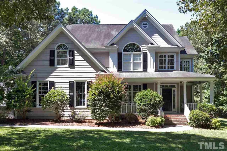 Lovely home with Victorian-style wrap front porch. Open floor plan with many upgrades including hardwoods, built-in oak bookcases and TV cabinet, indoor transoms, 9' smooth ceilings. Wooded lot is one acre with many mature hardwoods, nicely landscaped. Flat backyard has patio and detached storage shed. Just painted last year and Downstairs HVAC replaced in January. HOME WARRANTY INCLUDED.