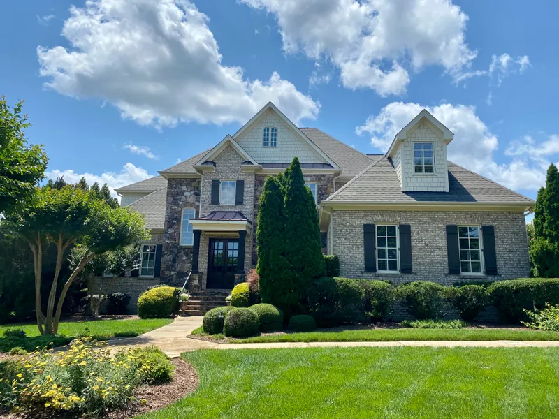 The adjectives that describe this residence are endless, but a good summary would be stunning, comfortable, pleasing, bright and efficient. Built in 2006 on an acre corner lot with a gorgeous brick and stone facade, high-quality finishes display the craftsmanship that characterizes this home. Handsome Mahogany double front doors greet you before stepping inside the bright two-story foyer with a grand staircase. On either side of the foyer is a home office with a coffered ceiling and a formal dining room with decorative molding and wainscoting. A double-cased entryway leads to the living room with a gas fireplace and built-in cabinetry that overlooks the immaculate back yard, covered porch and pool. The eat-in kitchen features granite countertops, decorative stone backsplash, a center island with breakfast bar and GE Monogram appliances that include: a gas range with oven, wall oven and microwave, dishwasher, and paneled refrigerator. The breakfast nook includes a wine cooler and built-in cabinetry, which flows into the keeping room with another gas fireplace and built-ins. Also on the first floor is the owner's suite, which has a tray ceiling and large windows overlooking the private, lush backyard. The spa-like bath includes his-and-hers vanities with granite countertops, a jacuzzi tub, stall shower and walk-in closet.