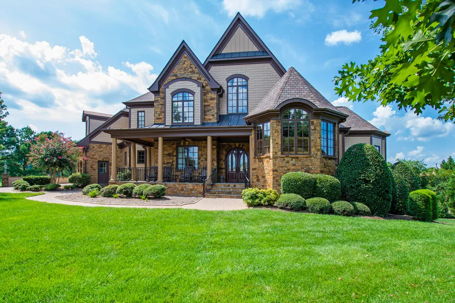 One of the features that truly sets this home apart is the gorgeous custom ceiling detail which can be found throughout the home. In addition to the vaulted ceiling, the keeping room just off the kitchen features a dramatic stone fireplace flanked by rich wood, built-in bookcases.
