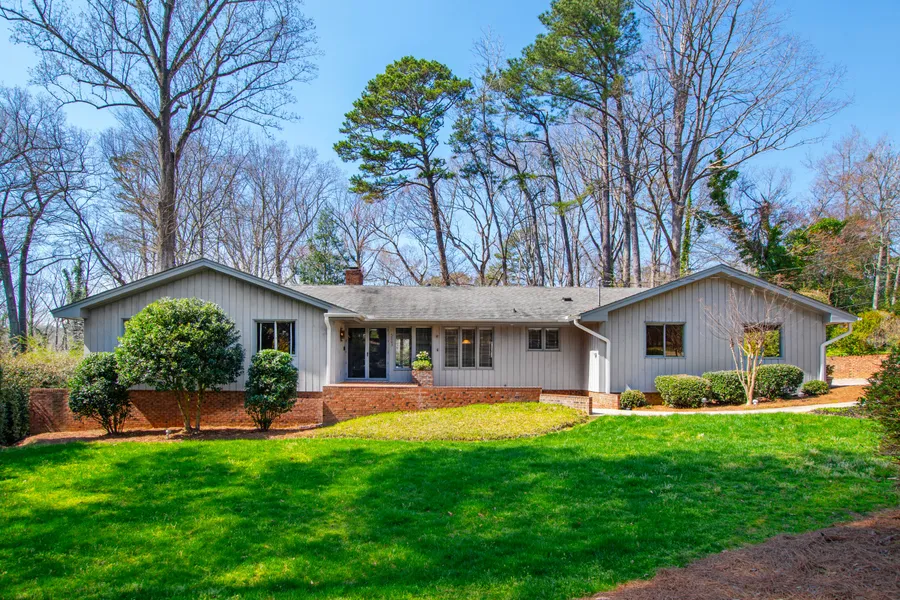 Discover a captivating blend of traditional charm and mid-century modern allure at 5003 Carteret, nestled on over an acre of picturesque land in Brookhaven.