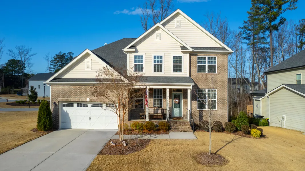 Welcome to 3564 Willow Green Drive, nestled within the charming Stillwater neighborhood in Apex, North Carolina. This captivating home epitomizes contemporary elegance fused with Southern charm, offering an idyllic retreat for those seeking comfort and sophistication. As you approach the property, a meticulously manicured lawn and lush landscaping lead you to a welcoming front porch. The exterior tastefully blends traditional and modern architectural elements and thoughtful accents. Step through the front door into a foyer surrounded by beautiful hardwood floors that flow from front to back as the natural light filters through expansive windows. The main level guest suite is just to the right at the front of the home offering privacy and separation within this open-concept layout which seamlessly connects the living spaces. Upgraded ceiling fans with lighting illuminate the family room that flows into the kitchen. The chef’s kitchen is adorned with stainless steel appliances, granite countertops, and custom cabinetry with upgraded sliding shelving and tiled backsplash. It is perfect for preparing gourmet meals or casual family gatherings. A generous island provides ample space for food preparation and doubles as a breakfast bar for casual dining. The open floor plan is great for entertaining, where guests can converse from the kitchen island creating an inviting ambiance for relaxation and entertainment. The breakfast area leads onto a screened porch which extends the living space outdoors, and steps guide you to the upgraded paver patio below. There are ample spaces to enjoy the serene surroundings of the wooded buffer behind the property with additional landscaping and a fenced-in backyard. The expansive backyard provides endless opportunities for outdoor recreation and entertainment. Whether hosting summer barbecues, playing lawn games, or simply enjoying the tranquil surroundings, this outdoor oasis is sure to delight you. The Energy Star-rated home features five spacious bedrooms, including a luxurious main-level owners' suite. The primary bedroom is a sanctuary of comfort, boasting a tray ceiling, plush carpeting, and a spa-like ensuite bathroom complete with dual vanities and walk-in shower. The second level features a large bonus room and three additional guest bedrooms that offer ample space, natural light, and generous closet storage, ensuring comfort and privacy for the most discerning guest. All windows throughout the home come with upgraded blinds for decorative style and privacy. Conveniently located in Apex, residents of this stunning home enjoy access to shopping, dining, and recreational amenities of Jordan Lake and ample parks provided by the Town of Apex. With its impeccable design, premium features, and coveted location, 3564 Willow Green Drive embodies luxurious living in the heart of Apex, North Carolina.