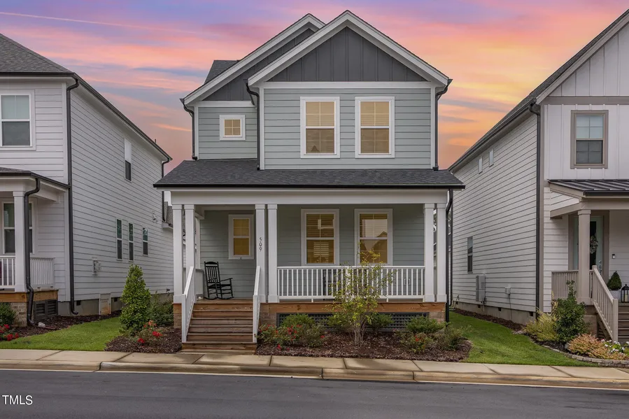 Now offered at $435,000, check out this fantastic value for a 2023 newer construction 3 bed 2.5 bath near the heart of Wake Forest! This home has all the conveniences of being centrally located - a quick walk or bike ride to historic downtown Wake Forest, close to great public and charter schools, and nearby shopping centers and grocery stores (Sam's, Wegmans, Target, etc.). This meticulously maintained open-concept home is full of natural light and still feels brand new. The simple and modern kitchen is a chef's dream with beautiful quartz countertops, a nearly 9ft oversized island with plenty of bar seating, and large sleek white cabinets. The floor plan flows seamlessly into an open living room with tasteful fixtures and great recessed lighting. Upstairs you'll find the spacious primary bedroom, walk-in closet, and excellently crafted primary bathroom with a double sink vanity and separate water closet. The laundry room is perfectly situated near the 2 guest bedrooms and additional full bathroom, making laundry a breeze! The outside of the house invites you to relax and spend more time outdoors with its oversized front porch and large back patio. The detached 2 car garage and upstairs attic allow for plenty of storage space. The Holding Village neighborhood is a hub for outdoor activity and fun thanks to its awesome amenities like 35 acres of green space, multiple parks, community pool, a 15-acre lake for kayaking and fishing, and miles of trails that connect to Wake Forest greenways. This is an ideal home and community for someone who wants to be in the mix of everything that Wake Forest has to offer but still values their outdoor spaces and amenities! Don't miss your chance on this one!