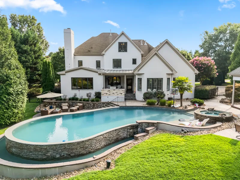 Experience luxury living in one of Raleigh's most sought-after communities—The Registry at Bailey Farm. Nestled on 1.28 acres in this prestigious North Raleigh neighborhood, this custom-built estate is a blending of elegance and modern comfort. Enjoy a resort-style backyard featuring a completely renovated 55,000-gallon pool (saltwater), recognized as one of Raleigh's finest, plus a pool house with an in-law suite and additional living space. Perfect for entertaining, the outdoor oasis includes a built-in natural gas grill and tons of seating. Inside, you'll find an open floor plan, a gourmet chef's kitchen with a gas cooktop, and an executive-level owner's suite. Entertain with ease in the custom home theater equipped with state-of-the-art technology. Recent updates include fresh interior paint and exterior paint within the last few years—this home is truly move-in ready and meticulously maintained.
