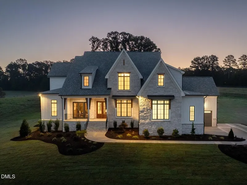 This 2025 Wake County Parade of Homes entry is a 4,847-square-foot new construction home that blends modern design with functional luxury. The exterior combines stone, siding, and metal accents, with a covered front porch featuring a slate floor. Inside, the home features 10-foot ceilings on the main level and 9-foot ceilings upstairs, creating a spacious feel. The family room includes hardwood floors, a stone-surround fireplace, and custom built-ins, and it connects seamlessly to the kitchen and dining area. The gourmet kitchen is designed for a home chef, with custom cabinets, quartz countertops, a large island, and two pantries, including a scullery and a butler's bar. Glass doors lead to a covered porch with a built-in grilling station, ideal for outdoor entertaining. The outdoor space also includes a phantom-screened porch with a fireplace. The primary suite is a private retreat wit...