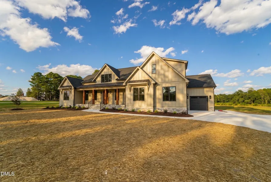 Welcome to 5008 Hopkins Chapel Rd, a stunning custom-built ranch that perfectly blends modern comfort with the tranquil beauty of nature. Nestled on a sprawling 1.5-acre lot, this meticulously home offers the ultimate retreat for those seeking privacy, space, and effortless one-level living. As you approach down the long, private driveway, you'll be greeted by the home's fantastic curb appeal and peaceful, surroundings. Step inside to discover an inviting, light-filled interior featuring an open floor plan designed for both everyday living and grand-scale entertaining. The heart of the home is the magnificent great room, with elegant coffered ceiling draws the eye upward and a cozy gas log fireplace with built ins either side creates a warm and welcoming ambiance. The seamless flow leads you into the chef's kitchen, a true delight featuring pristine white cabinetry, gleaming quartz countertops, a stylish tile backsplash, and a large island-perfect for meal prep and casual gatherings. The kitchen is equipped with a high quality package of Samsung appliances from gas range to counter top depth, 3 door fridge, pot filler over the gas cooktop massive food preparation area beautiful lighting under cabinet light fixtures, large pantry ! Your private owner's suite is a peaceful sanctuary, offering a spacious layout, vaulter ceiling and a luxurious en-suite bathroom complete with a dual-sink vanities, a large walk-in shower, free standing tub and a generous walk-in closet. Also private entrance to the utility room !!Two additional well-appointed bedrooms and a full hall bathroom provide ample space for family and guests. All vanities through out the home are beautiful quartz. Modern finishes with upscale trim, lighting and mirrors. A large bonus room upstairs with a full bath is a great place to gather or even use for homes schooling The exceptional outdoor living space is where this property truly shines. Enjoy your morning coffee or host summer barbecues on the enormous, covered and screened back deck, overlooking the vast back yard-an ideal, safe haven for pets and play. The incredible lot offers endless possibilities for gardening, exploring, or simply relaxing to the sounds of nature. 10mins into Wake Forest or down to e and enjoy the beautiful home built by award winning builder.