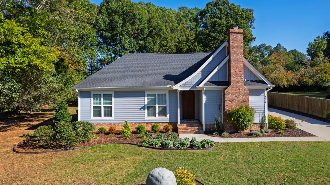 Immaculate custom-built ranch on over half an acre in one of Raleigh's prime locations! Perfectly situated on a flat, fully fenced 0.58-acre lot with no HOA or city taxes, this home truly is one of a kind. This is not your cookie-cutter home, instead you'll immediately be drawn to a thoughtfully designed property full of custom touches and timeless character. Step inside the solid wood door to experience standout features including low-maintenance luxury vinyl plank floors, nine-foot ceilings, arched details and heavy crown molding throughout which creates a refined, welcoming and move-in-ready feel. The kitchen boasts KitchenAid stainless steel appliances, a farmhouse sink with serene views of the backyard, granite countertops and solid wood cabinetry. The spacious family room features a cathedral groove ceiling and brick wood-burning fireplace, perfect for your cozy fall evenings. Retreat to the primary suite offering gorgeous tray ceiling, walk-in closet, soaking tub, tiled shower, and dual vanity. Step outside to enjoy the best that outdoor living has to offer including a two-car carport, giant hardwood trees, electric privacy gate at the driveway, and wired shed with electricity - ideal for workshop and additional storage. Just around the corner from shopping, dining, parks and major conveniences, don't miss your opportunity to own a truly unique, move-in ready home in one of Raleigh's best locations!