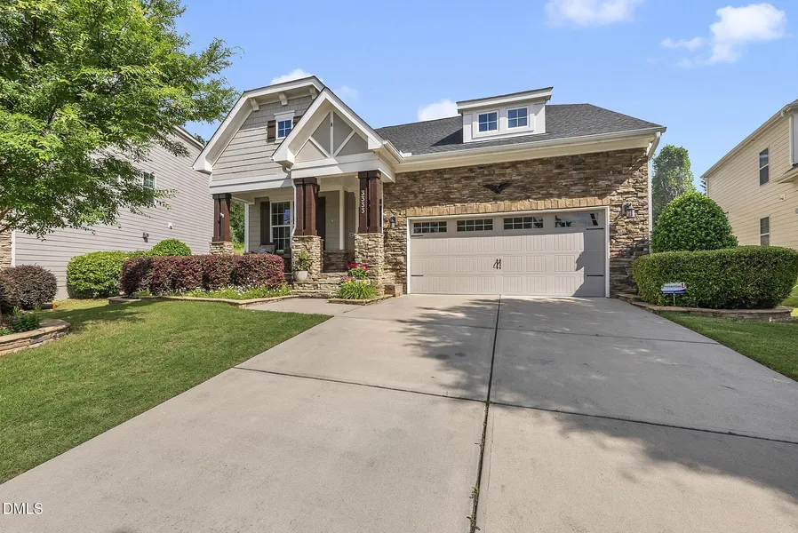 Not only is this home with its MAIN-FLOOR PRIMARY BEDROOM beautiful, but its location within the Heritage area of Wake Forest is adjacent to walking trails, schools, and restaurants. Every inch of this home was considered during its planning and construction, from the show-stopping curb appeal to the private back yard. The primo location is only topped by the stunning main-floor primary suite which includes coffered ceiling trim, upgraded carpet, huge windows, gorgeous OVERSIZED SHOWER with inlaid tile, and a massive WALK-IN CLOSET with storage system. Screened porch and paver patio overlook the beautiful backyard bordered by HOA land and hardwood trees. Like to entertain? The large, open-concept living space has views of the back yard and includes a MASSIVE KITCHEN ISLAND and HUGE WALK-IN PANTRY. Two walk-in attic areas, dining-room or flex space, HUGE laundry room, bonus loft, upgraded front elevation, and hardwood floors round out this amazing home.