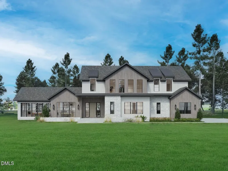 Custom-designed pre-sale residence entered for comp purposes. Built by award-winning Bost Custom Homes in Sanctuary at Falls Lake, North Raleigh's newest Private Gated community of 28 luxury homes bordered by the protected forests surrounding Falls Lake. Modern Transitional architecture blends stone, vertical wood siding, and horizontal shiplap for timeless character and elevated curb appeal on this 1.43-acre homesite.