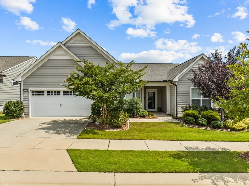 Here is an opportunity to own a stunning home with plenty of upgraded, custom entertainment features within the Del Webb at Traditions 55-Plus Community. This well-maintained community offers many engaging recreational opportunities, including a clubhouse with an indoor pool and spa, plenty of sporting courts, walking tracks, a fitness center and much more! This home offers an open concept living space all on the same level with easy access to all areas, a large sunroom with AC, a spacious office directly off the foyer, a large primary bathroom with upgraded features and two separate attic areas with flooring. Leading into the back yard, you will find a fenced-in custom entertainment area, fully equipped with a natural gas, stone firepit with seating extending from the main patio with a natural gas quick-connect grilling area, complete with a Weber grill. These are not the only upgraded features this home has to offer, though! In the garage, you will find three large custom built-in work benches with overhead cabinets, a utility sink with hot water, and another large built-in shelving unit. This garage offers plenty of functionality and room for parking two small vehicles. Move into this turn-key ready home, kick back, enjoy your own piece of paradise and enjoy everything this community has to offer!