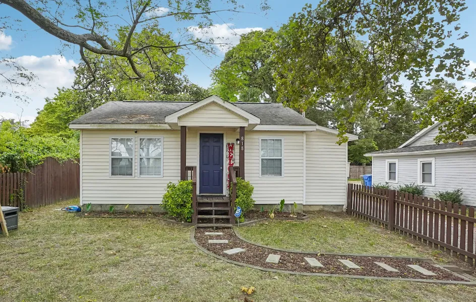 Welcome to this delightful ranch-style home offering 2 bedrooms and 1 bath, all with the added benefit of no HOA! The home showcases beautiful hardwood and laminate flooring, giving it a warm and inviting feel. The cozy living room opens up to a spacious kitchen, perfect for both everyday meals and entertaining guests. The primary bedroom features a generous walk-in closet, providing ample storage. The bathroom has been updated with a stylish tiled walk-in shower, adding a modern touch. Outside, the side porch and fenced-in yard are ideal for relaxing or hosting gatherings. Located in the heart of downtown Fuquay Varina, you’ll find yourself just minutes away from an array of restaurants, breweries, and shops!