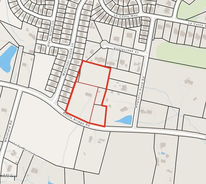 Expansive land near the final 540 construction phase! Five adjoining parcels, 7101 Battle Bridge, combined with 7103, 7105, 7109, 7113 Battle Bridge Rd totaling 6.8 acres. Updated ranch home included with sale. Geotech survey recently completed. Seller is a NC licensed real estate broker.