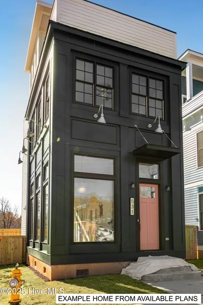The example home plans and photos in this listing are from the Shop House plan, a 2 br, 2.5ba 1407sqft designed to look like a historic shop. The home features 12' ceilings on the first floor with massive windows along the front and left of the house. While any of the 16' wide plans will fit on this lot, this plan provides an example of how the woodland views provide the opportunity for huge windows without sacrificing privacy. For the complete list of available plans and builder references please contact the listing broker.