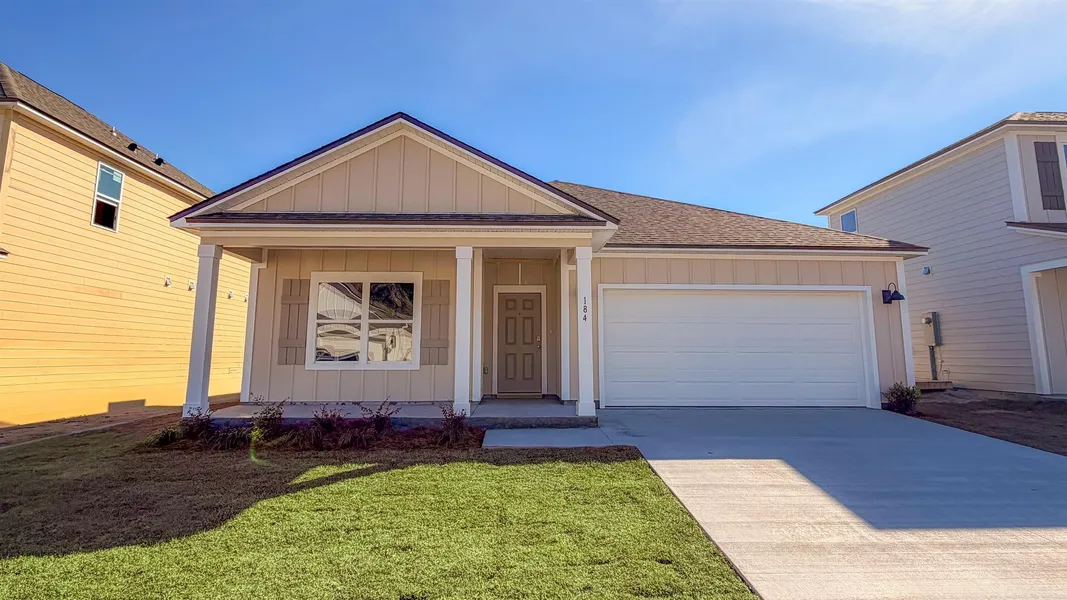 Welcome to 184 Needle Thrush Circle in Misting Springs, our new home community in Crawfordville, FL. Misting Springs is an ideal new neighborhood with community pool and pickle ball court within the center of Crawfordville. The one-level Beau plan is a spacious, 4-bedroom, 2 bath design in 1,799 square feet with 9-foot ceilings. As you enter the Beau, you will find two bedrooms and the second bathroom with a tub/shower combo off the foyer. The third bedroom is further down the hall, making it a perfect space for private guest room or office. The hallway then leads to the beautiful open kitchen featuring a spacious walk-in pantry and large island. This island overlooks the dining and living room combination, creating the perfect space for entertaining and everyday meals. The kitchen features granite countertops, stainless steel appliance and white shaker-style cabinets. The living room is open to the kitchen and offers ample space to make it your own. The primary suite is your private getaway on its own end of the house. Your primary bath features a luxurious shower, double vanity, private water closet and large walk-in closet. This home features luxury vinyl plank flooring in common areas and soft carpet in bedrooms. The floorplan in complete with a two-car garage and laundry room, providing utility and storage. Most importantly, you can feel comfortable knowing quality materials and workmanship are used throughout, plus you will have a one-year builders' warranty. **Images are for illustrative purposes and may differ from actual home built.
