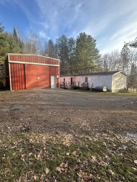 Beautiful lot with impressive views on a wooded private lot. The garage is massive and is set up for auto repair, storage or another business. Live in the current mobile home, remove and put a newer one on or build. The possibilities are endless.