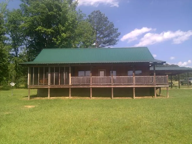 Driving through the gate you can see a beautiful view of the hills and the home place. The exterior walls are cypress board and batting. The handrails and the screened in porch on the front are cedar. The exterior rafters on the carport and front and back porch are 4 x 6 pine as well as the exposed ceiling tongue and groove v edge pine.