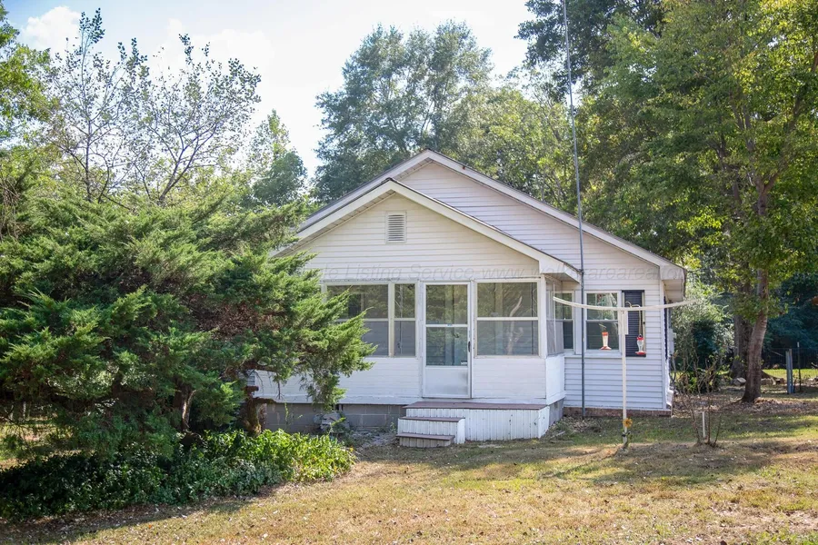 This 3 bedroom/1 bath house would be a great starter home OR investment property. It has an enclosed front porch, heat pump (appr 2 yr) new LVT flooring, new windows, some beautiful wood ceilings and freshly painted interior. Sitting on 0.9 ac (+/-), there is an 48' x 24' workshop that has 6'' concrete pad (per seller) w/tie downs and 2 bay doors. Cash or conventional only.