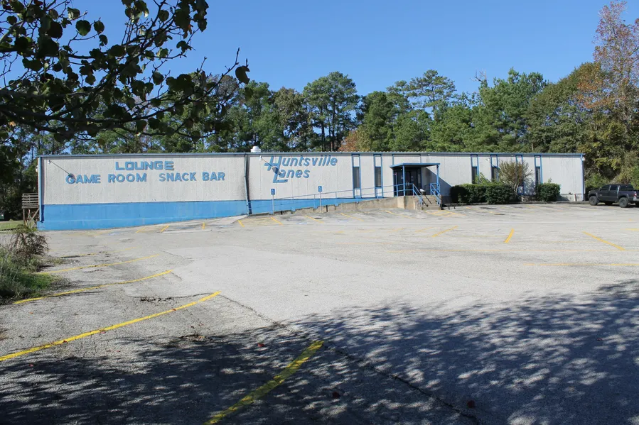 Commercial location on I-45. Property is located at the corner of I-45 and Collard Street. Very visible location with easy access from I-45. Collard Street is a connecting road to FM 1374, providing access to the areas in Huntsville, north of property. This is important from the fact the I-45 feeders are one way. The property has been operated for years as "Huntsville Lanes" a 24 lane bowling center. The building that houses the bowling alley is 21,145 square feet of cooled space. It provides offices, restrooms, grill and bar areas within. All aspects of the business are operational, however the property is priced for the real estate only. If interested a price will be quoted for the property and business including all owned equipment. The land area is over 139,902 sq. ft., it fronts 408' on I-45 feeder, 708' on Collard Street, the average width is 275' and the average depth is 544'. Access to the property is from I-45 feeder. The property is provided all city utilities and is located in an un-zoned area of the city. Nearby business are a convenience store, two motels, restaurant, medical offices and state owned office facility. Two major automobile dealerships are just south of the property. Currently two mobile homes are located upon the property, however they are also not included and will be moved off upon a sale.