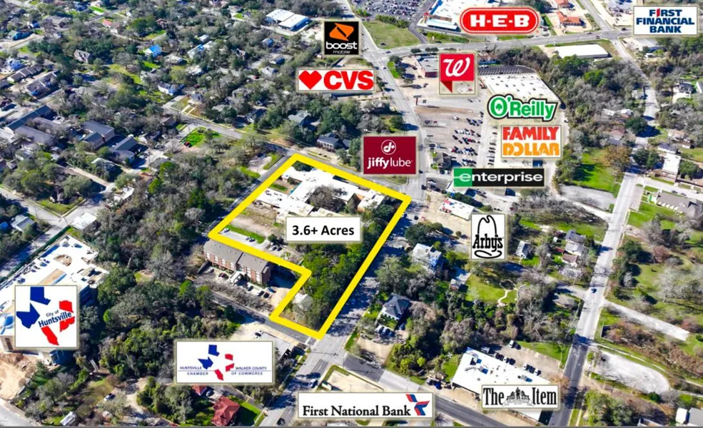 Strategically positioned near major traffic generators such as H-E-B, Downtown Huntsville, Sam Houston State University, and Interstate 45, this property is ideally situated for a wide range of development opportunities.
