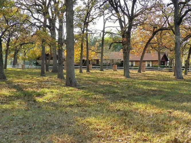 A beautiful small ranch property featuring many improvements. The over 2,700 SF, 4/2.5/2 home on the property is very well maintained and attractive. It is situated among large hardwood trees and has a pipe and brick column fence that surrounds the home. Four additional buildings consist of a 24'x36' shop building on slab, a 28'x40' utility building on slab, 38'x44' cattle barn with pipe working pens and a 16'x40' Motor Home storage building. All of these buildings are in great condition. The two gated entrances are attractive and constructed of pipe and brick. Drives from the highway are hot mix asphalt and the other is made of chip and seal asphalt. The entire road frontage is fenced with a four rail P.V.C. material giving the appearance of wood rail but without the maintenance issues associated with wood. The main feature to this land is the water, a 20' deep 4 acre lake is just north...