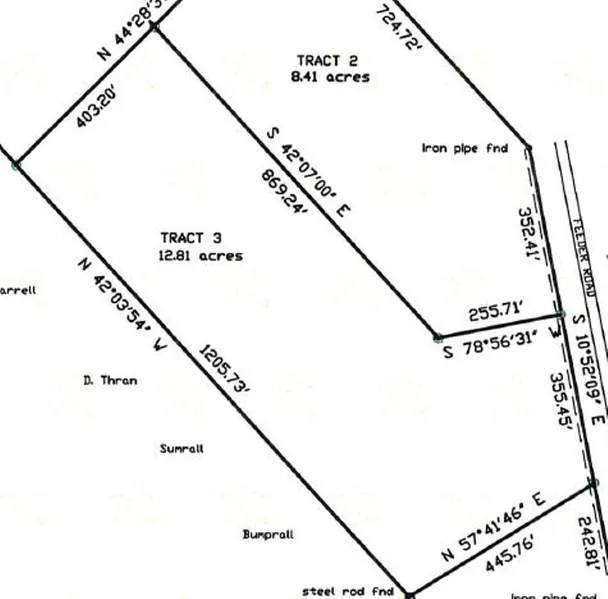Entire property is 27.5 acres divided in to 3 separate tracts. The tracts have approximately 961 feet of road frontage.