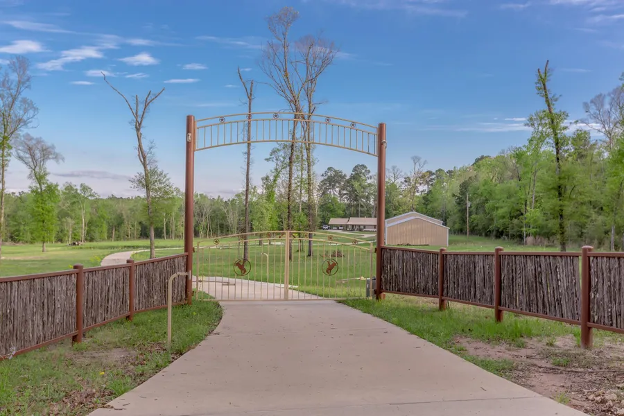 IMPRESSIVE -Stone/Brick custom on 10 manicured acres in Walker County. Wrought iron/pipe gated entrance, concrete driveway, Open concept floor plan, Granite/island bar kitchen, concrete stained floors, custom cabinetry/build-ins, stone fireplace, surround sound, gutters, outdoor kitchen, pergola bar area, brick fire pit, gutters, sprinkler, pond, 50x60 enclosed metal building w/ stone office & 1/2 bath, 40x50 covered metal building & pond. Too many features to describe.