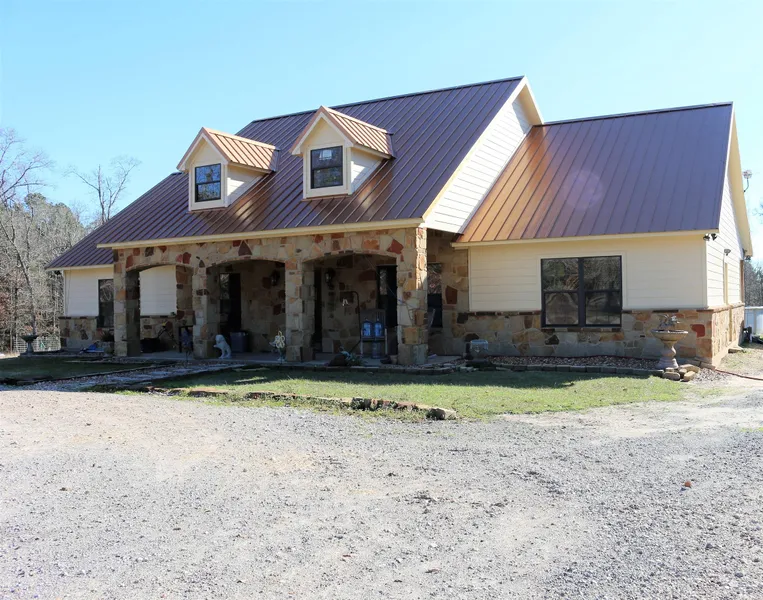 East Walker County Ranchette Available: 2 Story Stone Home on secluded 11.03 Acres (CAD) off Hwy 19. This 2005 home features approximately 2853 SF with split plan/open concept; 3 bedrooms and 2 full baths downstairs, 1 bedroom or bonus room and 1 full bath upstairs. Living room has a beautiful stone, wood burning fireplace and 2 sets of double French doors with access to the back porch for viewing the acreage and wildlife. Other property features include a 14x24 storage building, RV storage garage, and a 30x50 workshop with guest quarters (full kitchen & bath included). The acreage is a wooded tract with several scattered soft and hard woods. This property currently is home to several horses, chickens, and 3 pot bellied pigs - make this your ranch today. ML#:65220527