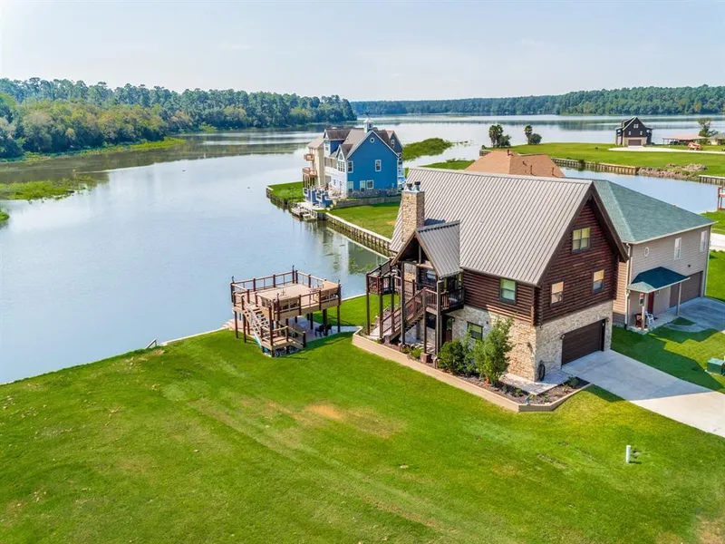 Spectacular and impeccably maintained, Waterfront, 3 story log home with amazing views of Lake Conroe and the Natural Forest with a boat house and motorized boat lift. This 3-4 bedroom, 2.5 bath home is spacious, updated with granite/stainless in the kitchen, large bedrooms and plenty of space for family and entertaining. The vaulted ceilings and walls of windows let in spectacular views of the lake and natural forest. The interior walls are Aspen, 2 fireplaces, large decks with lake views, coating on windows, tile and wood flooring. The gated neighborhood offers 2 area pools, marina, 2 boat launches, 2 picnic areas a with pavilion. You will love this home!