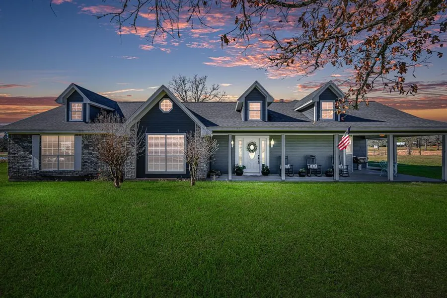 As you approach the residence down the long gravel driveway, a sense of space envelops you as you gaze over the 6 acres of open farmland. Once you arrive to this one-of-a-kind custom built home, you are greeted by a spacious covered front porch, perfect for enjoying the picturesque views, morning coffee or evening glass of wine. Upon entering the home you are met with beautiful craftmanship throughout, a cozy oversized livingroom w/fireplace, coffered ceilings, solid oak glass panel French doors, providing natural light and countryside views. The oversized kitchen w/solid oak cabinets provides an ample amount of countertop and storage space. Spacious primary bedroom w/several windows capturing the beauty of the surrounding nature. The primary bathroom offers w/independent shower & jacuzzi tub w/ separate water heater. Enjoy the peacefulness of country living and the abundance of wildlife. Property is Unrestricted and perfect for livestock, 4H projects, hay, gardening and so much more.