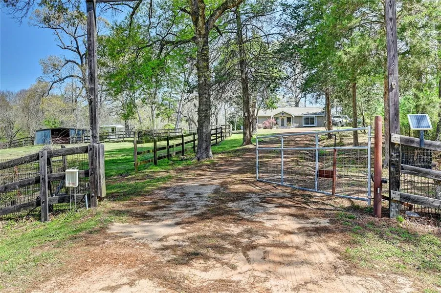 UNRESTRICTED! 5.06 acres with GATED ENTRANCE - only minutes from town and easy access to HWY I-45. Great location! With 1,737+/- SF. of living space, this 4-bedroom, 2-bath home offers open design with spacious kitchen, granite countertops , and stainless steel gas oven. Versatile primary suite is ideal with a separate living area. The 3 secondary rooms are situated on the opposite side of the home. The property features mature trees, fenced front & back pasture, 32'x40' 5- stall barn & tac room, and a 19'x9' storage building. Bring your horses! Ample space for projects, parking and more! Septic and well house. This property is ideal for a perfect escape from the City! Enjoy the tranquil ease of living the country life. Schedule your showing today!